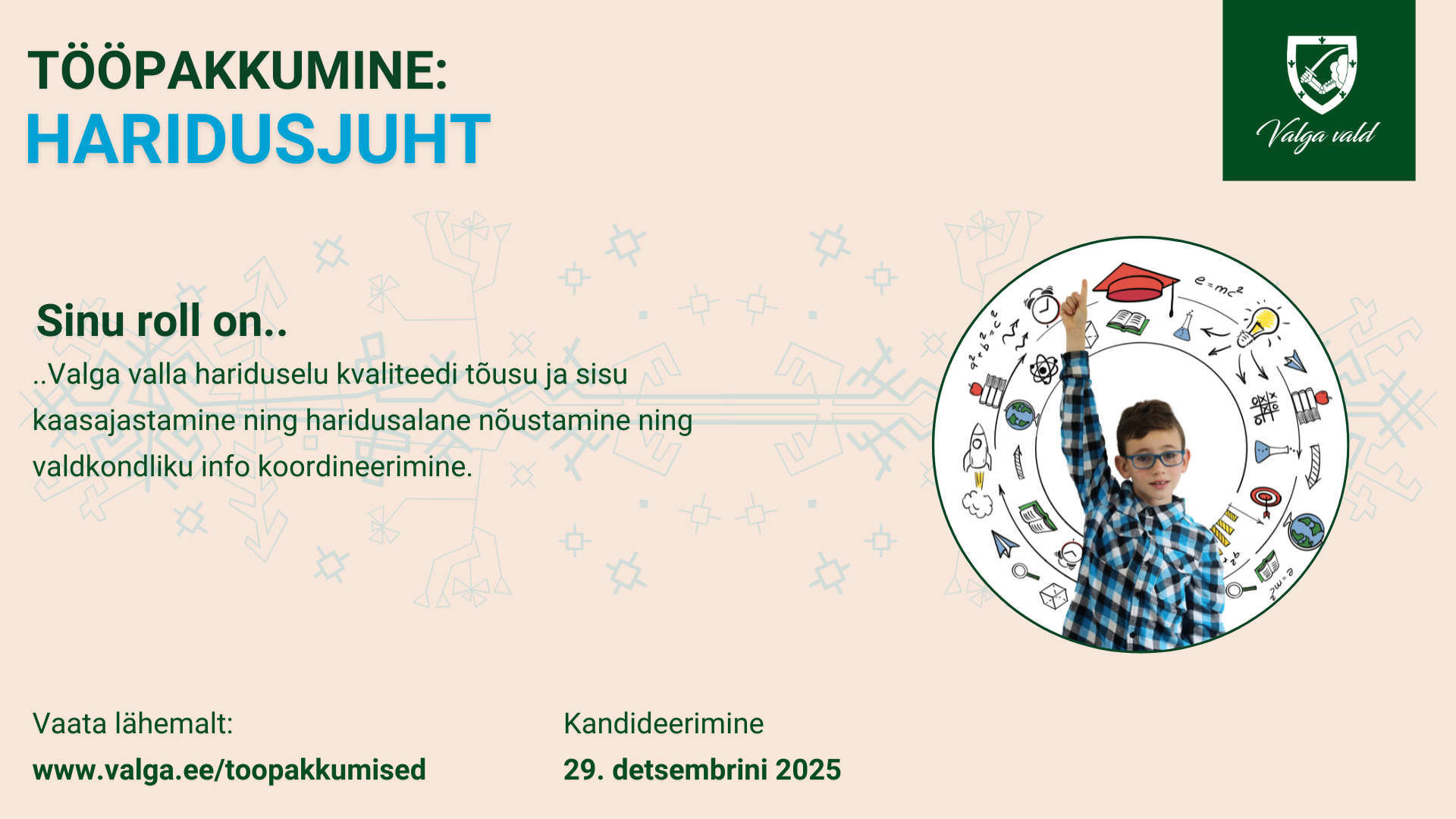 We are looking for a new director for Valga Basic School. A person who has children, learning and valuing the community at heart.