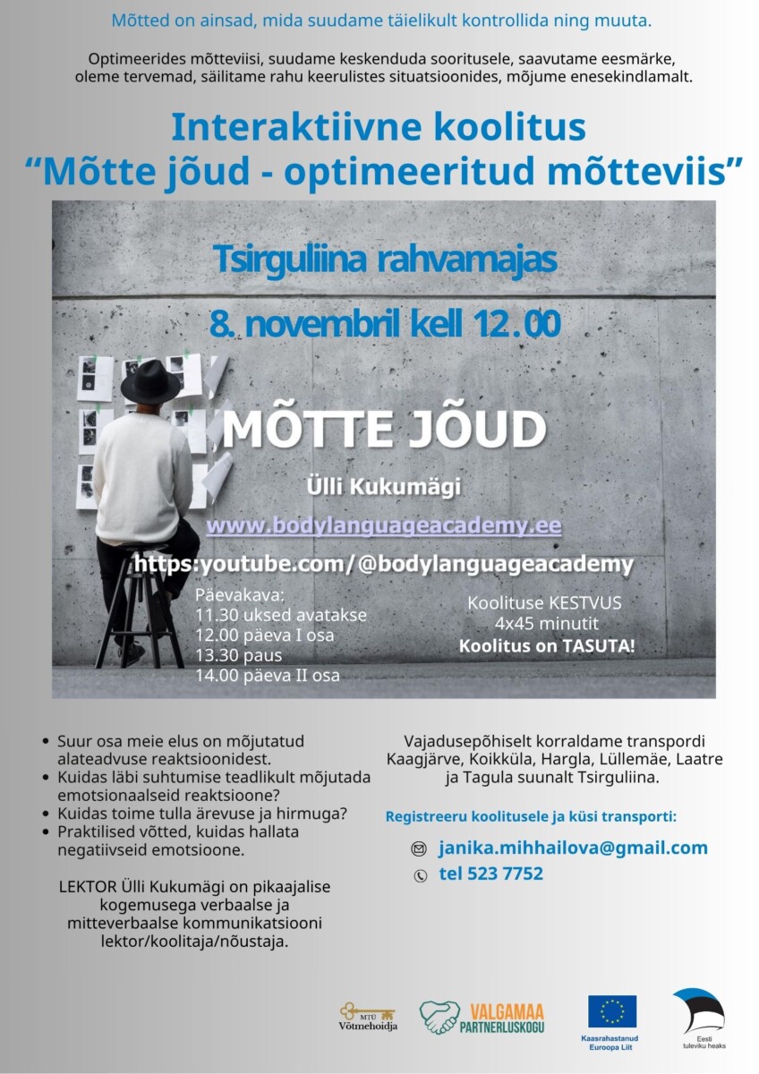 Interaktiivne koolitus “Mõtte jõud – optimeeritud mõtteviis”