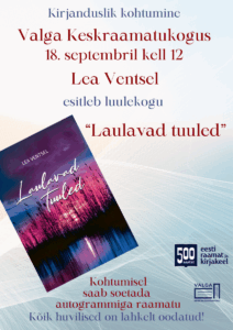 Kell 12 Valga keskraamatukogus Lea Ventseli vastse luulekogu “Laulavad tuuled” esitlus. Kõik kirjandushuvilised on oodatud. Kohapeal võimalus osta raamat.