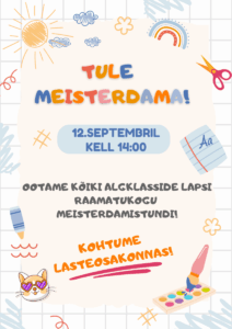 Kell 14 Valga keskraamatukogu lasteosakonnas meisterdamisring. Vahendid kohapeal olemas. Tasuta!
