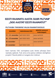 Eesti raamatu 500. sünnipäeva auks tikime piltvaipa Eesti raamatu ajaloost. Tule anna oma panus sellesse üleriigilisse projekti! Tikandi pildid on kangale ette trükitud.