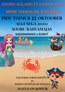 Pidu toimub 11. oktoobril algusega kell 20 Sooru rahvamajas.