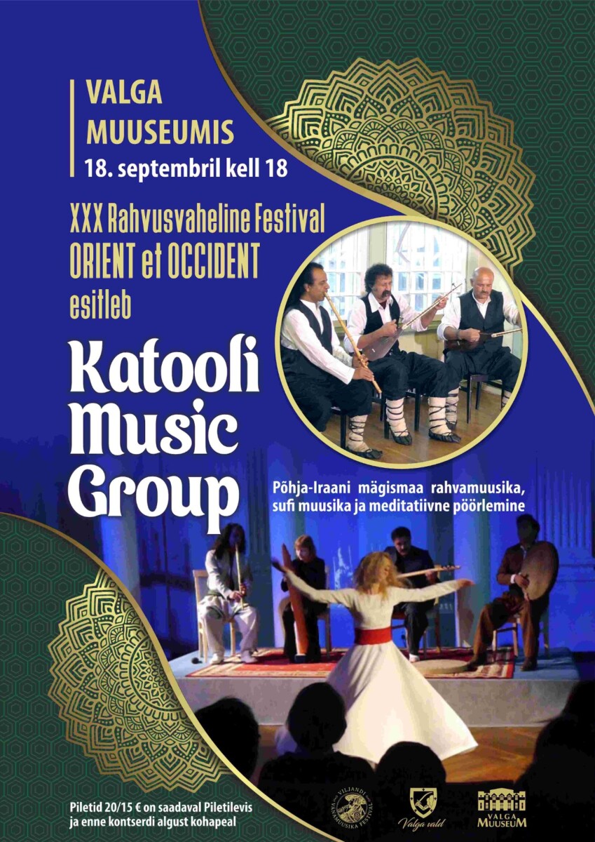 ![]() Valga Muuseumis esinevad Põhja-Iraani rahvamuusikute ansambel Katooli Music Group ja meditatiivse pöörlemise tantsija. Külastus Valka toimub XXX Rahvusvahelise Festivali ORIENT et OCCIDENT raames. Üritus on tasuline ning piletid on saadaval Piletilevis ja enne kontsert-etenduse algust kohapeal. |