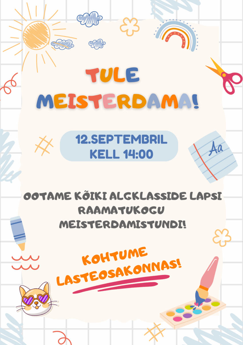 ![]() Kell 14 Valga keskraamatukogu lasteosakonnas meisterdamisring. Vahendid kohapeal olemas. Tasuta! |